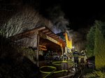 Bei der Lageerkundung durch den Einsatzleiter stellte sich heraus, dass kein Waldbrand vorlag, sondern ein Carport bereits in Vollbrand stand. Aufgrund der unmittelbaren Nähe zum angrenzenden Wald sowie zum Wohnhaus bestand akute Gefahr eines Übergreifen des Feuers.