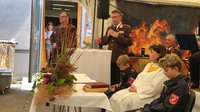 „….in Wirklichkeit feiern wir heute nicht das neue Auto, das neuen Gerät. Sondern wir feiern euch……jede und jeden die ihr mehr tut als ihr tun müsstet und die ihr euch in der Feuerwehr engagiert! Und wir feiern mit euch eure Partnerinnen und Partner, eure Familien die euch den Freiraum und die nötige Zeit geben und unterstützen……damit das alles gelingen kann und dass ihr helfen könnt…..!“