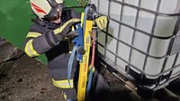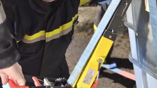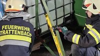 Eine knifflige Aufgabe: Ein instabiler Behälter auf den Unterschenkel unserer Übungspuppe war die Ausgangssituation. Sichern mit Spanngurte und Stabfast, mitwachsendes Unterbauen beim Anheben mit Hydraulischem Kombigerät und Hebekissen brachte uns zum Übungsziel und unser „Patient“ konnte aus der „verzwickten“ Lage befreit werden!
